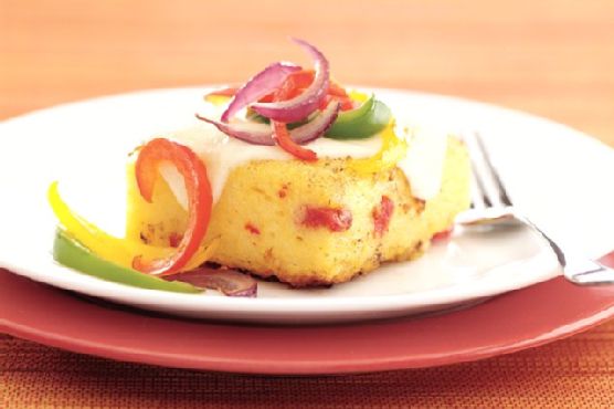 Sun-Dried Tomato Polenta Squares Topped with Three Peppers