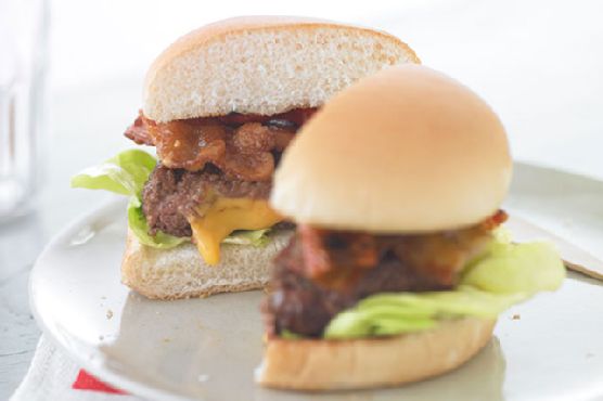 Cheese-Stuffed Burgers with Bacon