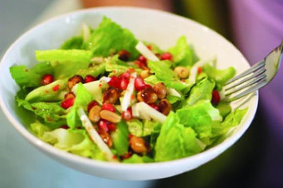 Romaine Salad with Spicy Peanuts & Pomegranate Seeds