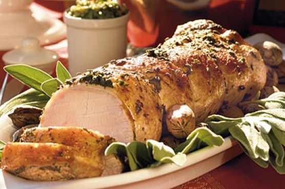 Roast Pork with Sage and Pecan Pesto