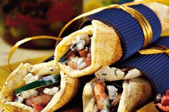 Grilled-Shrimp Gyros with Herbed Yogurt Spread