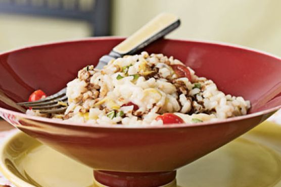 Risotto with Fresh Mozzarella, Grape Tomatoes, and Basil