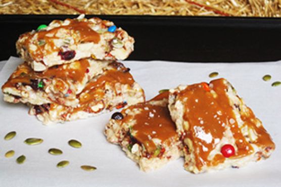 Trail Mix Treats with Drizzled Salted Caramel