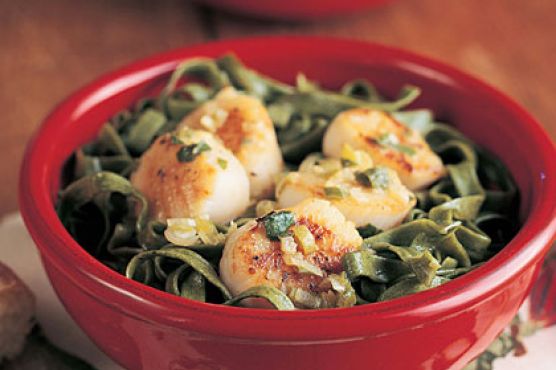 Basil Scallops with Spinach Fettuccine