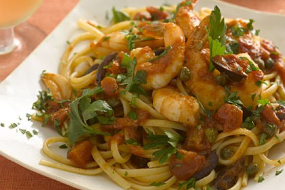 Linguine With Shrimp, Tomatoes, Olives, and Capers