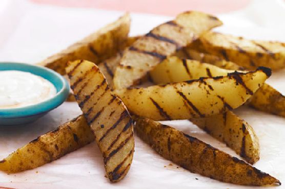 Grilled Steak Fries with Spicy Blue Cheese Dipping Sauce