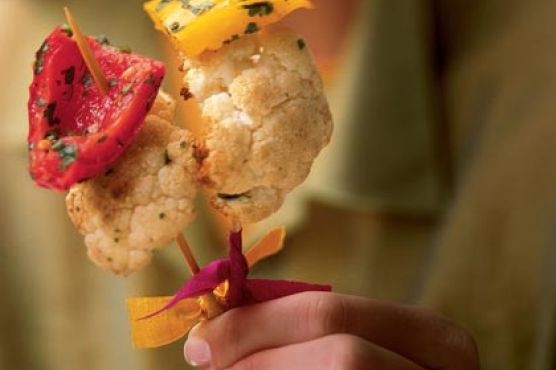 Roasted Cauliflower Skewers with Sweet Peppers and Cumin