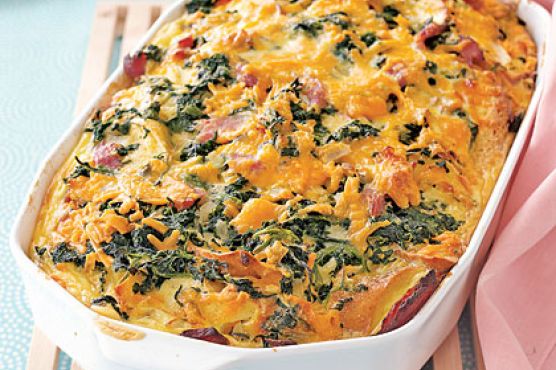 Cheddar, Ham and Spinach Strata