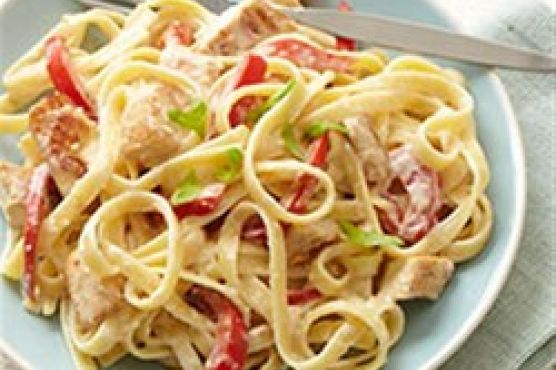 Creamy Fettuccine Alfredo with Chicken and Bell Peppers