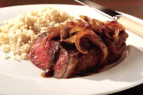 Strip Steak with Onion Wine Sauce