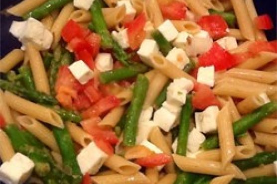 Lemon, Garlic, and Asparagus Warm Caprese Pasta Salad