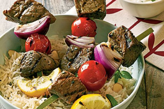 Lamb Souvlaki with Feta-Mint Dipping Sauce