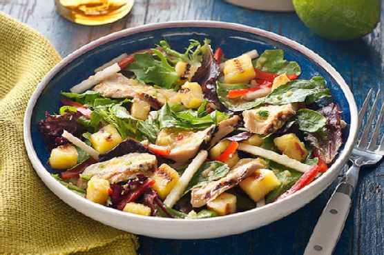 Grilled Chicken & Pineapple Salad with Pineapple-Serrano Dressing