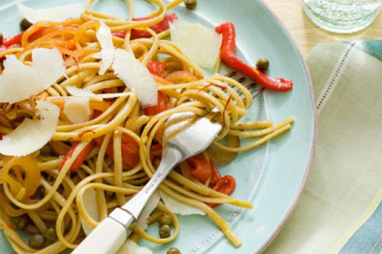 Whole-Wheat Linguine with Saffron and Roasted Red Peppers