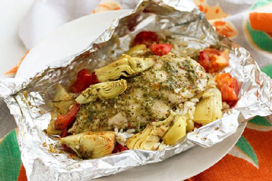 Foil-Pack Chicken & Grilled Artichoke Dinner