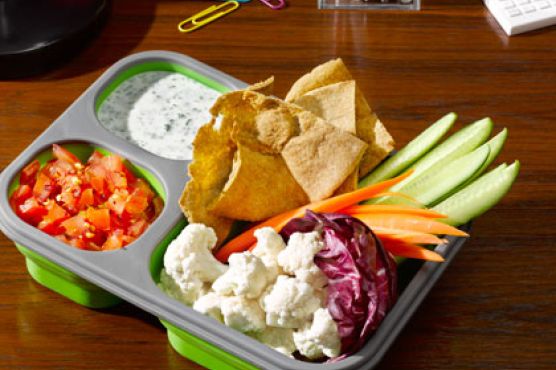Dal with Cucumber Cream and Pita Chips