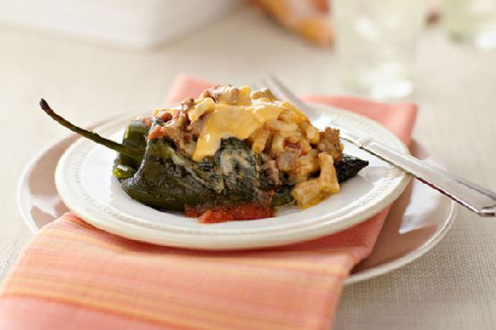Beef & Macaroni Stuffed Poblanos
